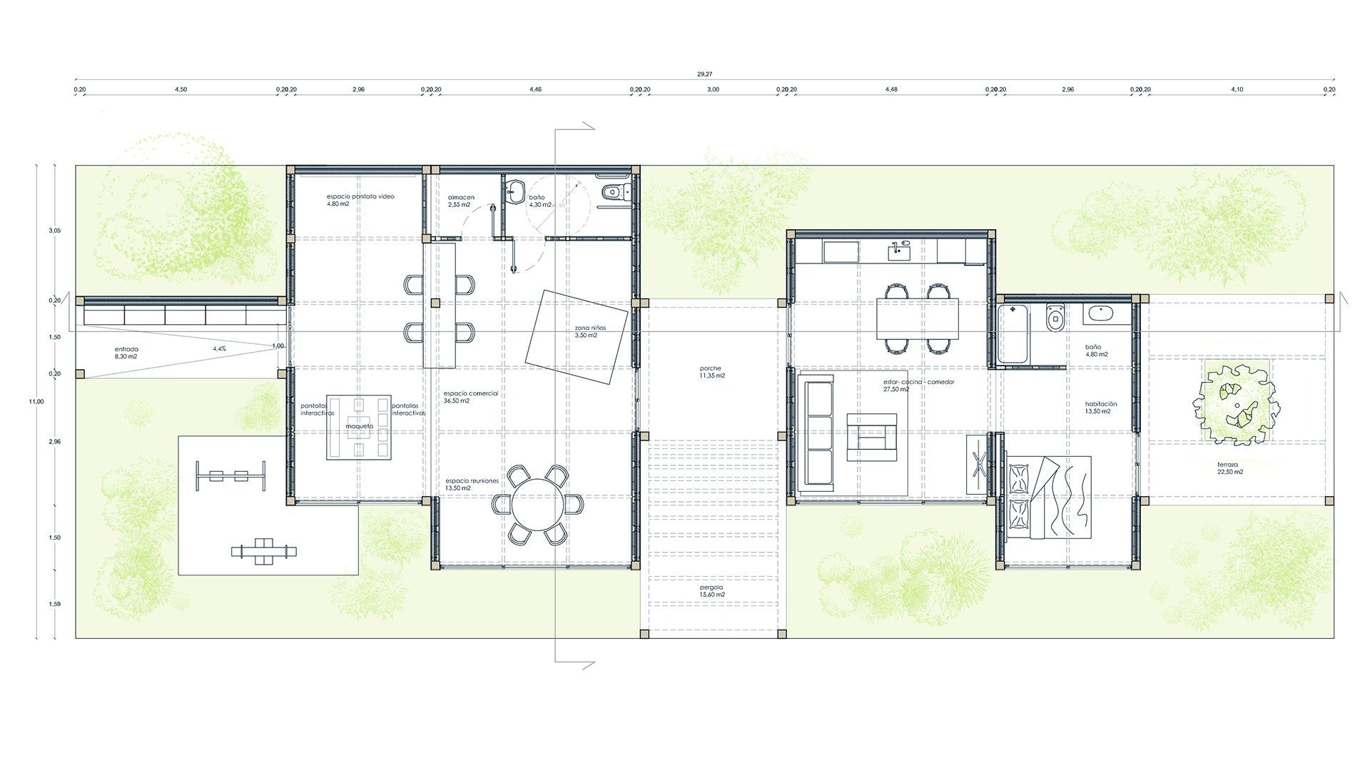 AEDAS Home contest design proposal is a flexible space for an office area and a sample flat area. It is made with modular and transportable elements that can be adapted to any location.