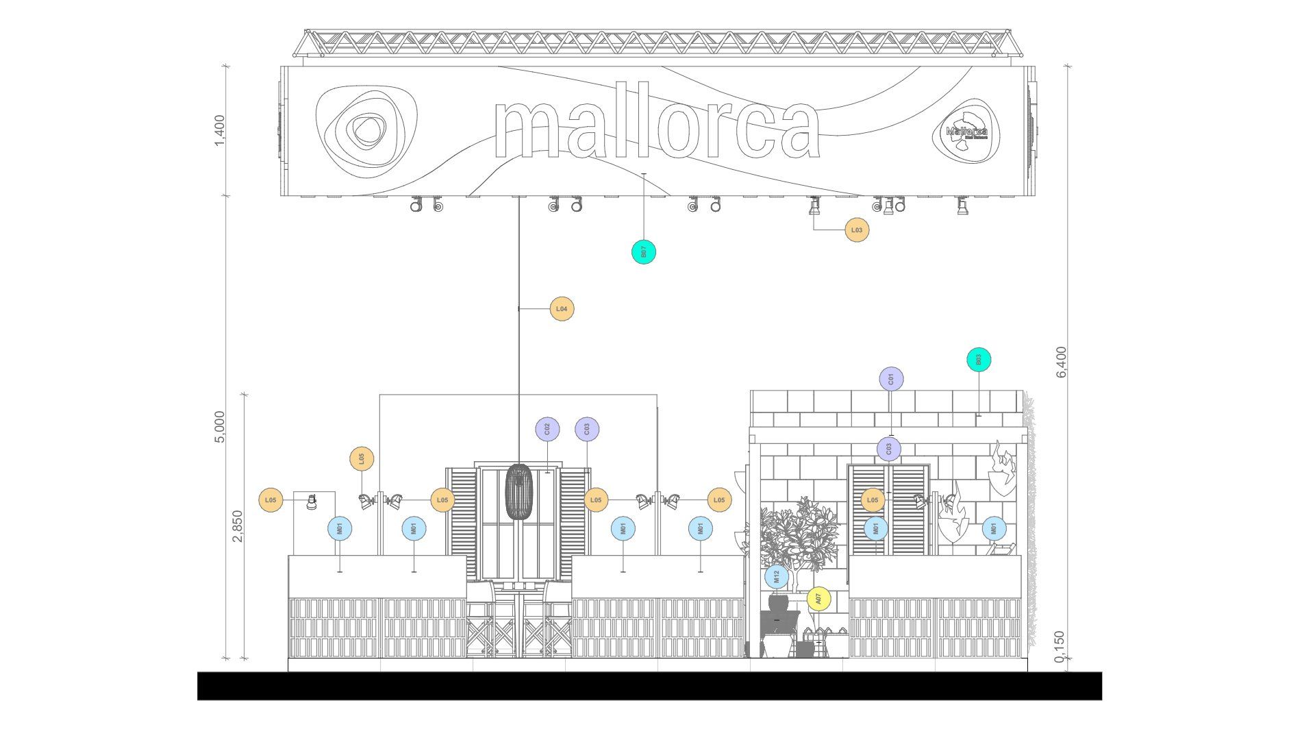 La propuesta del stand para ferias de turismo nacionales e internacionales transmite la idea de Mallorca como una isla ambientalmente sostenible, comprometida con la Agenda 2030. La idea detrás del diseño es crear una experiencia emocional-sensorial, que transporte a los visitantes desde la feria directamente a Mallorca. Las emociones vividas al visitar la isla se recrean mediante el uso de la luz, el olfato, el tacto y la vista.